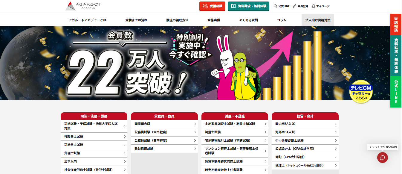 無料体験するだけでも、お得な内容になっていますので、アガルートで受講するかまだ迷っている方は、まず資料請求でお試しすることをおすすめします。