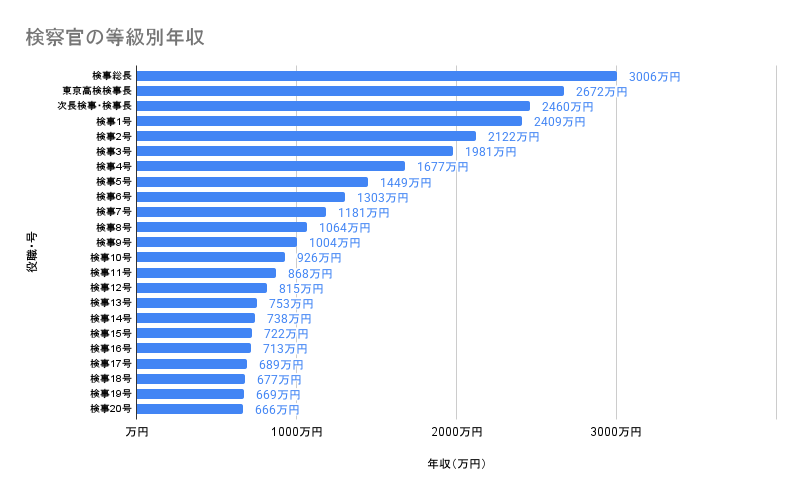 検察官の月給は、等級によって異なるため、平均年収は等級によって大きく異なります。
