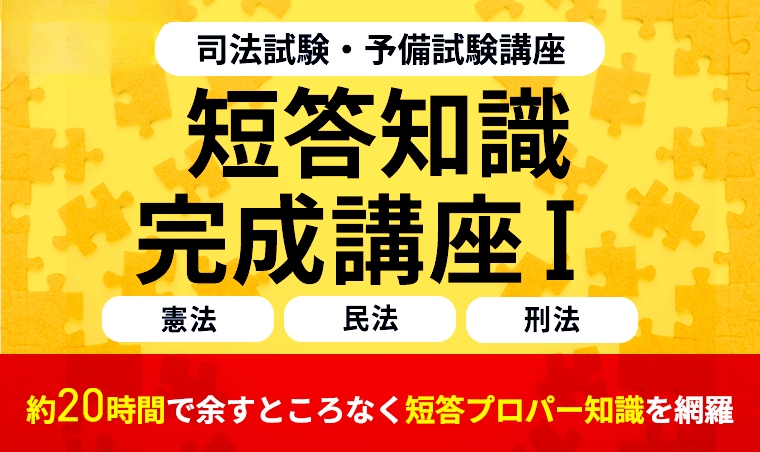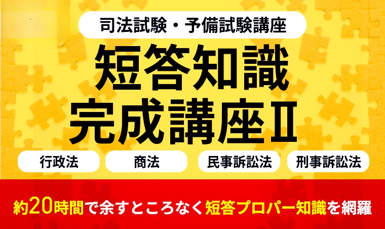 短答プロパー知識を効率的かつ短時間で習得したい方には、アガルートで憲法・民法・刑法を扱う「短答式知識完成講座Ⅰ」行政法・商法・民事訴訟法・刑事訴訟法を扱う「短答式知識完成講座Ⅱ」を受講するのがおすすめです。
