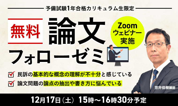 司法試験|【無料】論文フォローゼミ<予備試験1年合格カリキュラム生限定>