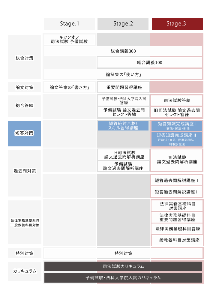 司法試験・予備試験・法科大学院入試で出題される短答式試験においてのみ問われる独自の知識(短答プロパー知識)を習得することを目的とする講座群です。