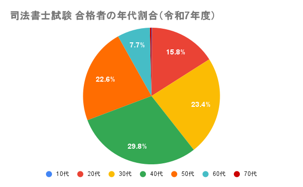 司法書士試験の合格者の平均年齢は例年40歳程度で、令和7年度の司法書士試験合格者の平均年齢は42.05歳でした。