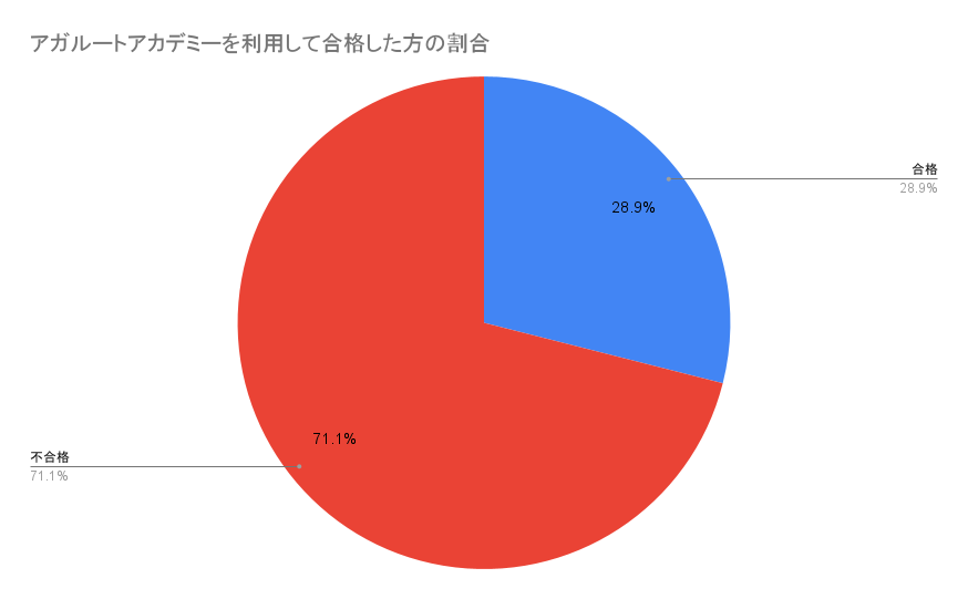 一方でアガルートアカデミーを利用して合格した方の割合は3割弱となりました。
