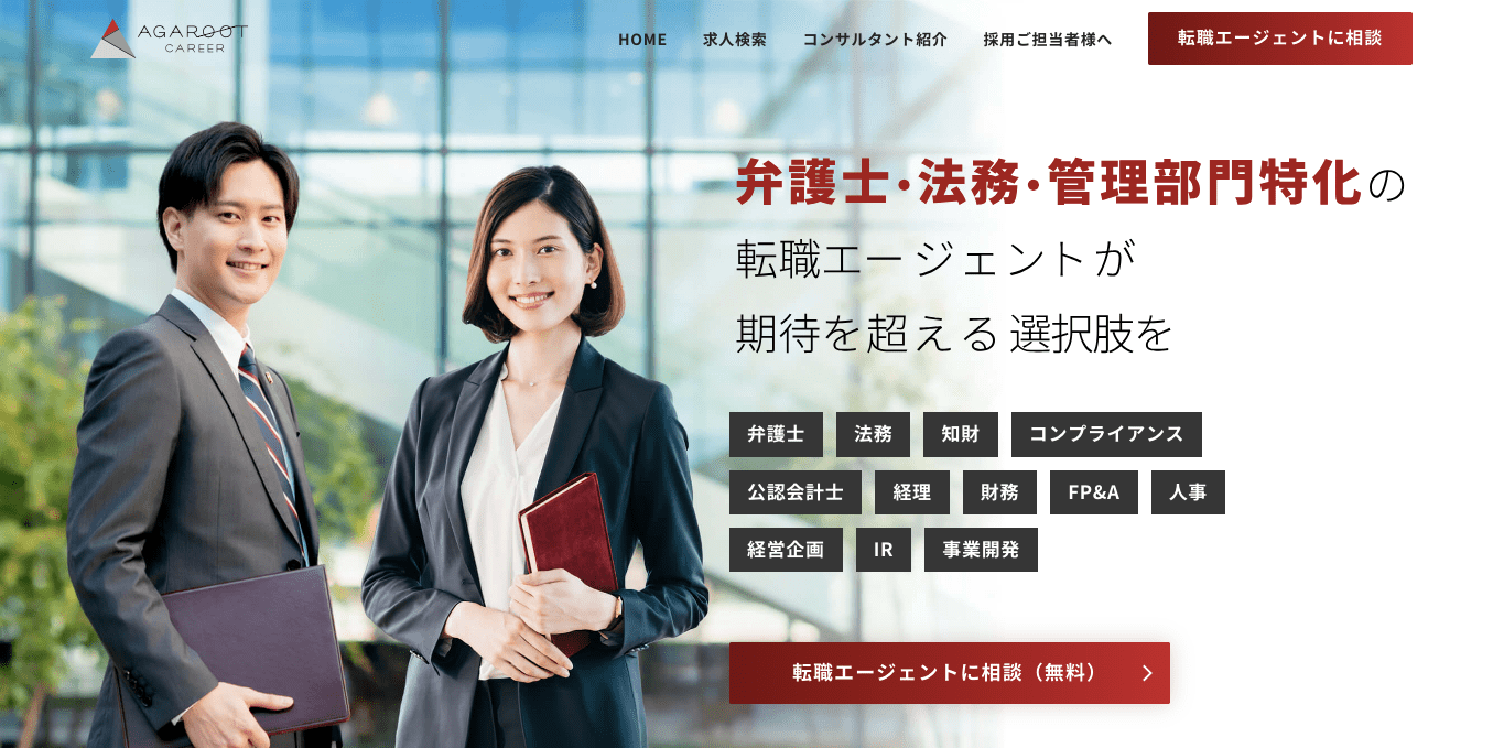 アガルートキャリアは弁護士や司法書士をはじめとする法務・管理部門の就転職サポートに特化した転職エージェントです。