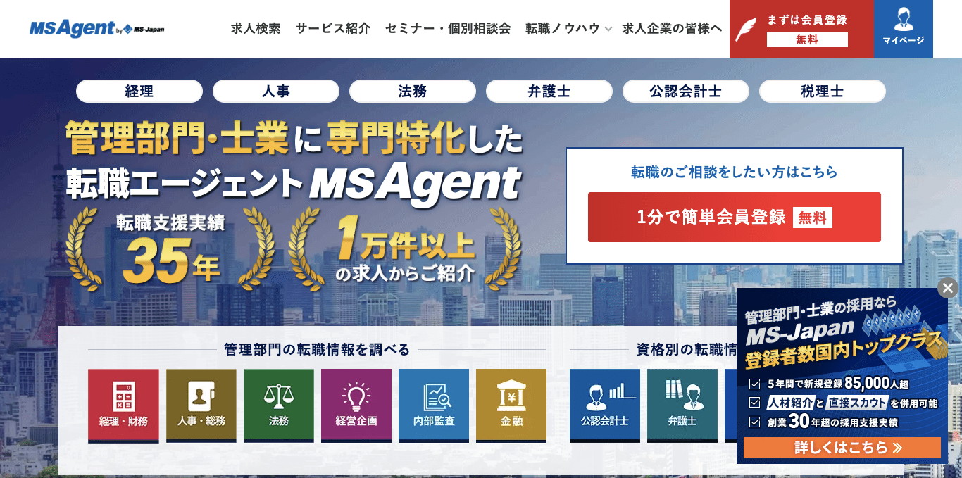 MS-Agentは、転職支援実績35年超の老舗転職エージェントです。