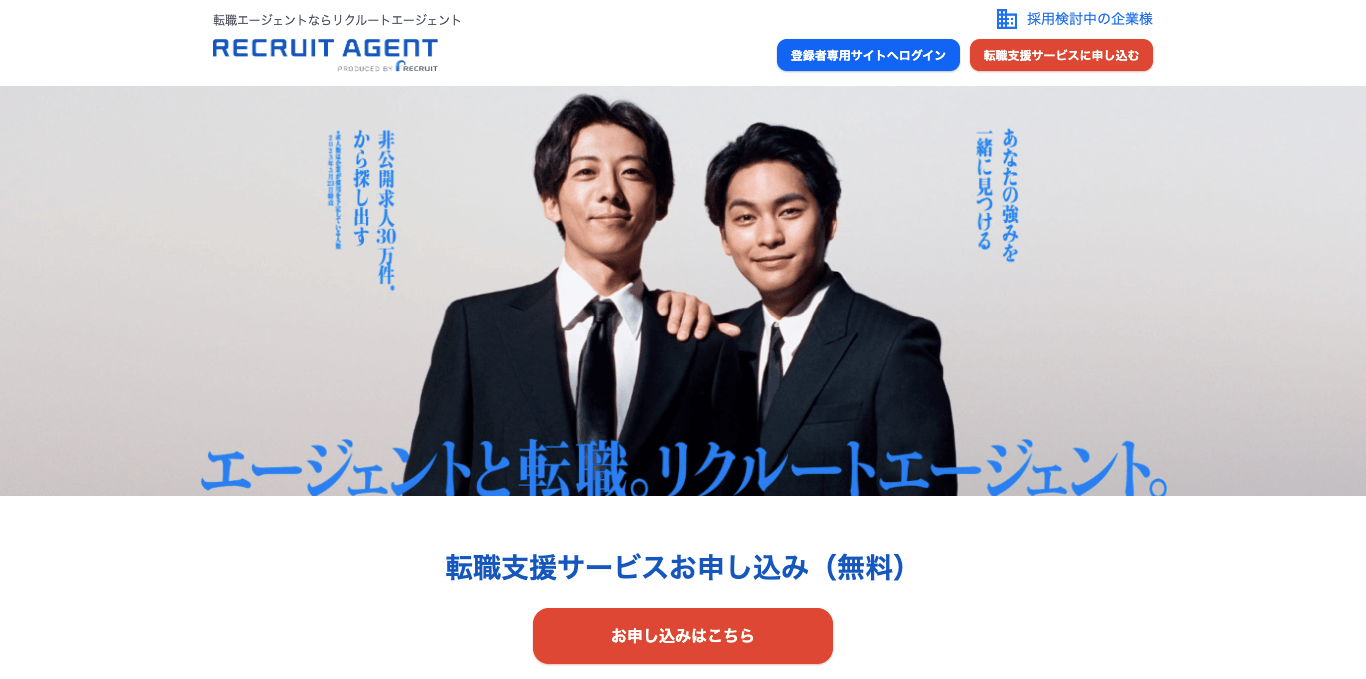 リクルートエージェントは、司法書士を含めた多数業種の求人を取り扱う転職エージェントです。