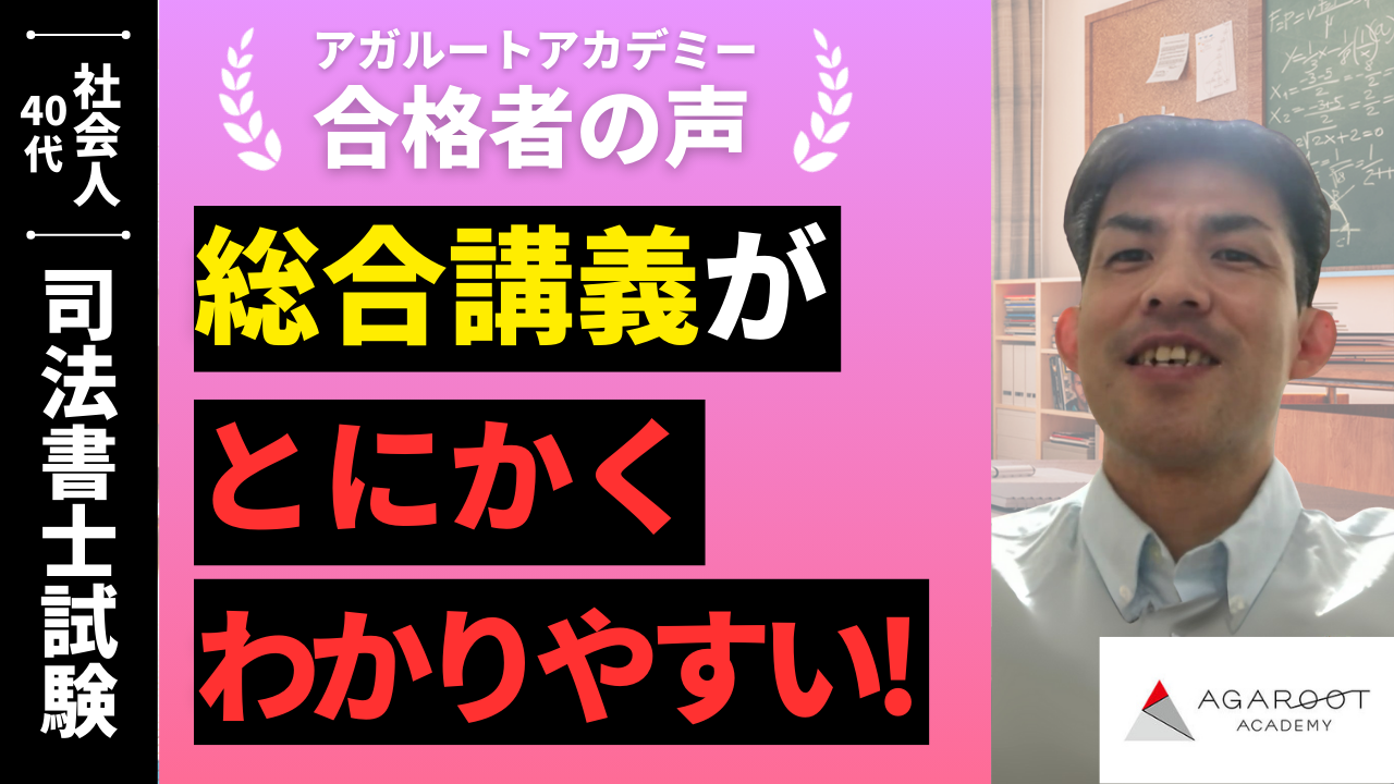 司法書士の勉強を始めて約1年半で令和5年の試験に挑戦し、不合格となり、筆記試験の合格発表があった日にアガルートさんの受講を申込みました。