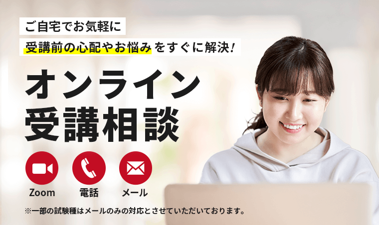 「これからの学習で間に合うか不安…」「どの講座を選べばいいか分からない…」など、あなたの不安やお悩みを最短10分~のオンライン相談で解消します!