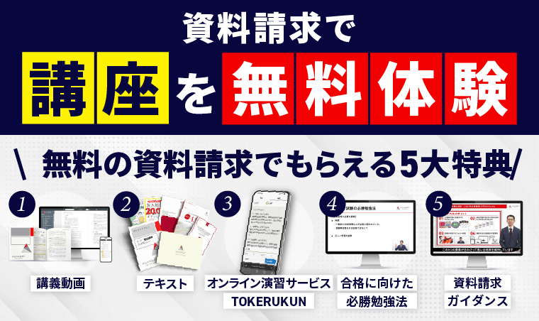 資料請求をしていただいた方に、アガルートの無料体験講座をプレゼントしています。
