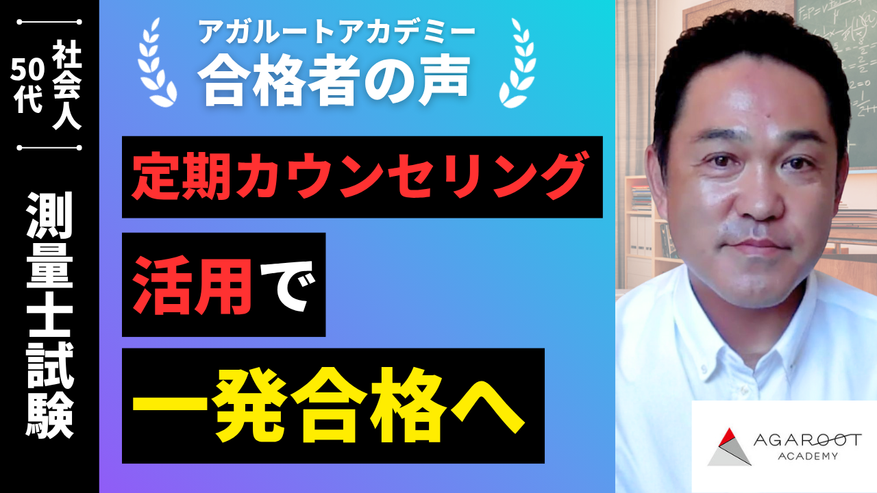 測量士試験に対しては、余裕をもって、確実に合格することを前提に学習を開始。定期カウンセリングと添削オプションも利用し、『絶対合格』の体制を取りました。