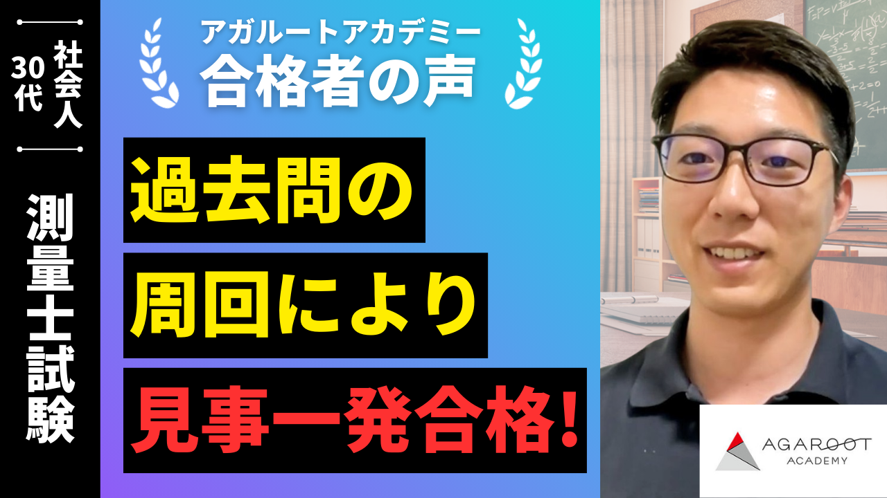 令和4年にアガルートアカデミーの測量士補試験講座および土地家屋調査士試験講座を受講し、同年に両資格試験で合格することができました。この際、チャプターごとに分かれている講義と自宅やカフェなどどこでも受講できる受講システムが自分に合っていたため、今回もアガルートアカデミーの講座を選びました。