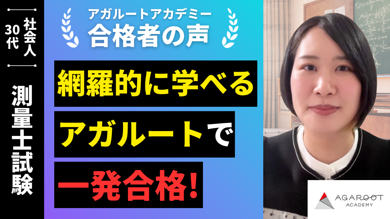 1年程独学で測量士試験の勉強を進めてみましたが、数学の基礎からわからないところがあり、なかなか進みませんでした。アガルートは基礎から過去問題の実践、電卓の使い方まで学べるため、アガルートの講座を選びました。