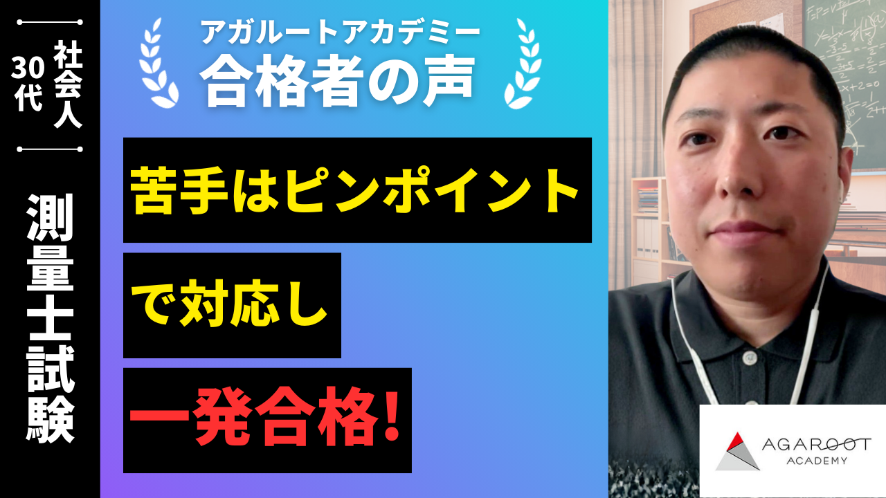 それに対して、アガルートさんは、youtube動画にて合格者の声、各サンプル動画、中山先生の声がとても魅力的であり、測量士試験合格講座を受ける際は、ぜひアガルートさんで!と思い申し込みました。