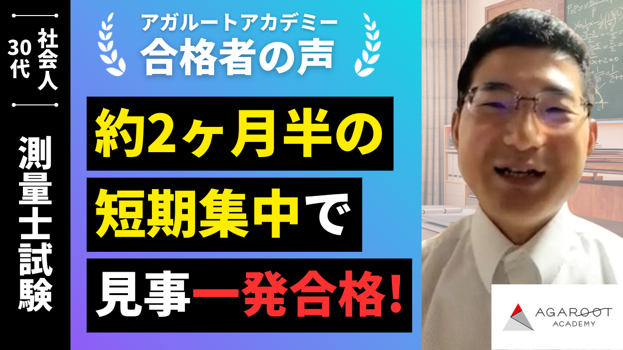 18才のときにアガルートアカデミーの行政書士試験速習カリキュラム・ライトを受講して合格したという経験から、アガルートアカデミーの講座で対策して試験に臨めば合格できるという確信があったため、測量士試験の対策方法をインターネットで調べているうちにアガルートアカデミーに測量士試験のこうざもあることを知り、受講することを決めた。