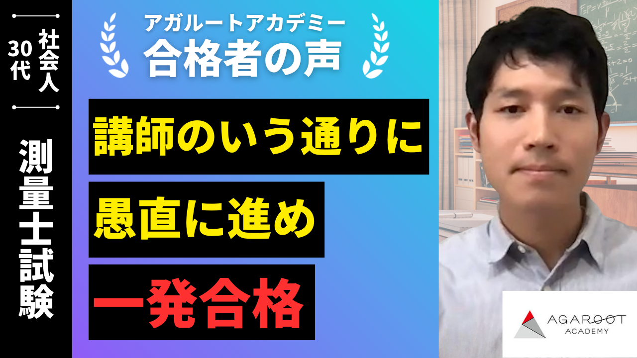 測量士補は市販のテキストが比較的充実しており、独学でも十分自分に合った学習が可能な環境が整っていましたが、測量士はテキストや過去問を探しても選択肢が非常に限られており、独学で合格を目指すのは私にはハードルが高そうな印象を受けました。そんな中、通信講座の利用を考えていた時、youtube上でアガルートの中山先生のサンプル講座を見つけました。私のような初学者にはとっつきにくいと感じる専門的な内容でも、中山先生の要点を押さえた明快な語り口と図解による説明をきくと「なるほど!」と腑に落ちる思いがしました。