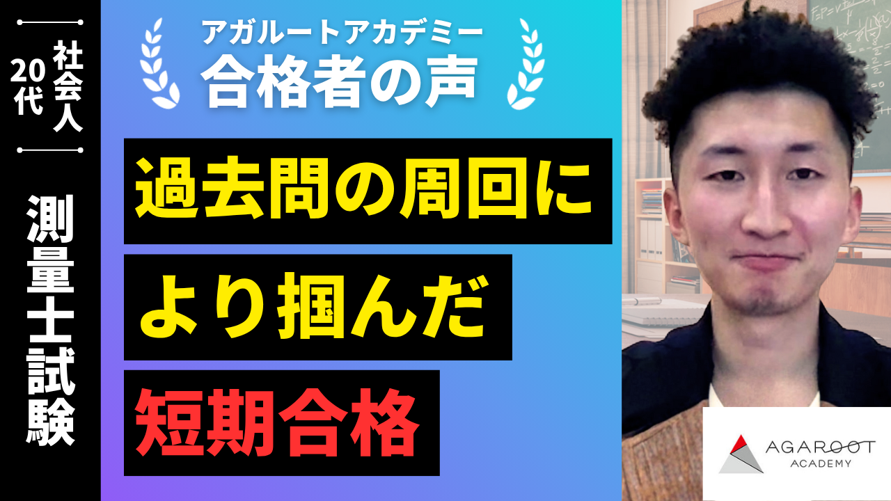 独学では限界を感じていた中、アガルートアカデミーの講座は、短時間で効率よく学習できるカリキュラムや、実務に直結した解説が魅力的でした。特に測量士試験の出題傾向に即した教材や講師による的確なサポート体制に惹かれ、仕事と両立しながらでも合格を目指せると確信し、受講を決意しました。