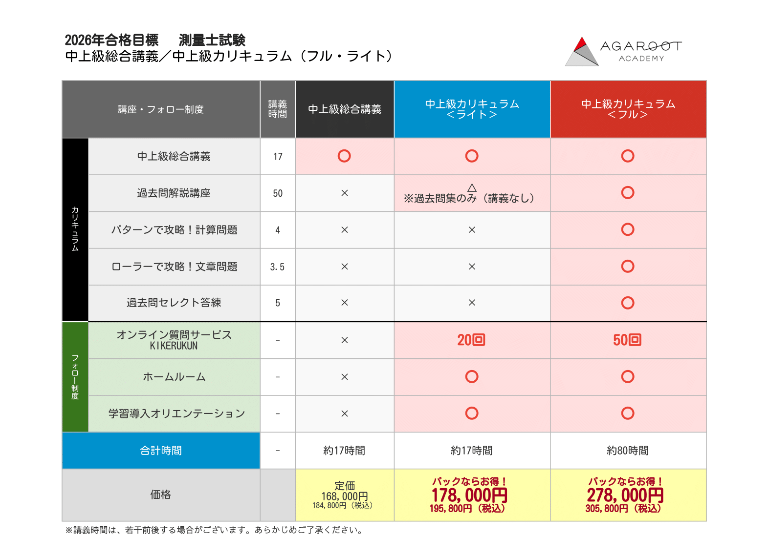測量士試験|【2026年合格目標】中上級総合講義/中上級カリキュラム(フル・ライト)