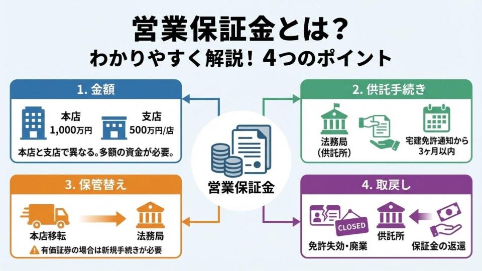 営業保証金の要点を押さえて、理解を深めていきましょう。