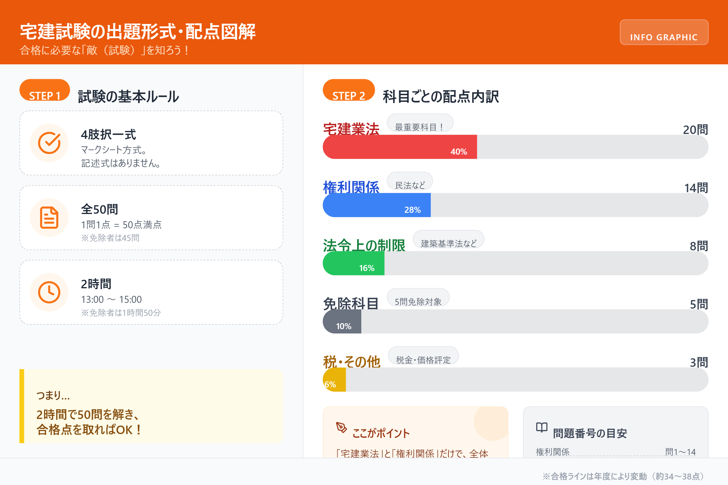 宅建の試験内容・問題構成、配点や科目などについて!勉強の順番も解説!