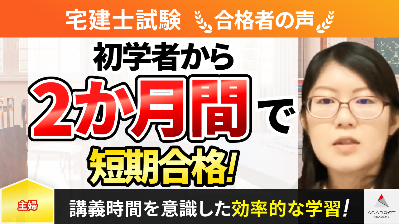 インターネットで宅建受験を得意とする予備校を検索し、合格者数が多く比較的安価で受講しやすいのがアガルートであったため資料請求をした。