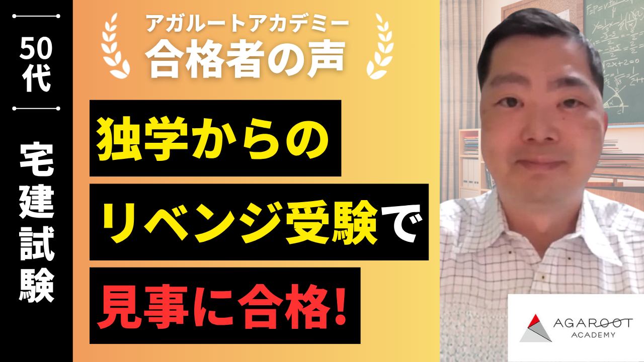 7月から10月までの短い間でしたが、濃密な楽しい勉強をすることができました。大変ありがとうございます。アガルートの多角的なカリキュラム構成、丁寧で緻密な講義、受講者を応援して伴走する温かい講師陣、すべてが短期合格に繋がっていると思います。宅建の勉強を通して、まだ不動産の勉強を続けたくなりました。来年は管理業務主任者、賃貸不動産経営管理士に挑戦しようかと思います。引き続き宜しくお願いいたします。