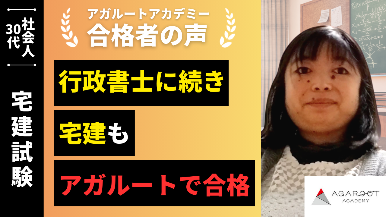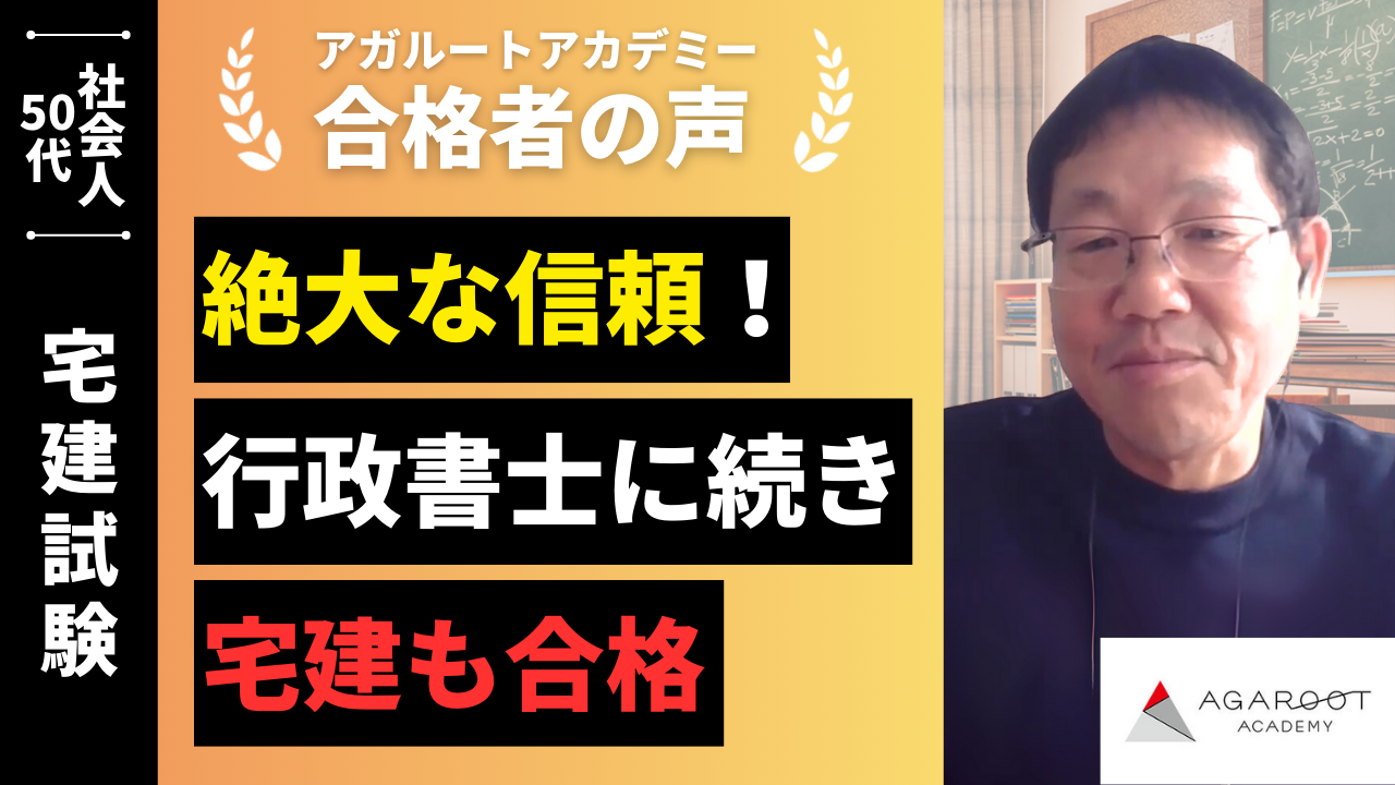 行政書士の講座もアガルートで受講し合格たので、宅建でもアガルート以外考えていませんでした。テキストもシンプルで分かりやすく、林講師の過去問講義が重要なところは繰り返し説明してくれ、出題頻度の低いところはバッサリ省略してくれるところが分かりやすく、宅建でもお世話になりたいと受講を決めました。