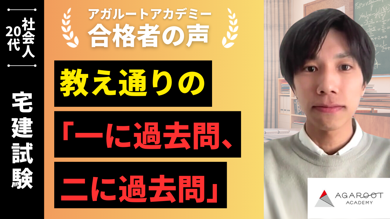 アガルートの講座では、実際に回答を出す際の思考の流れに沿って解説されており、本番試験を想定してより効果的に対策することができたように感じています。