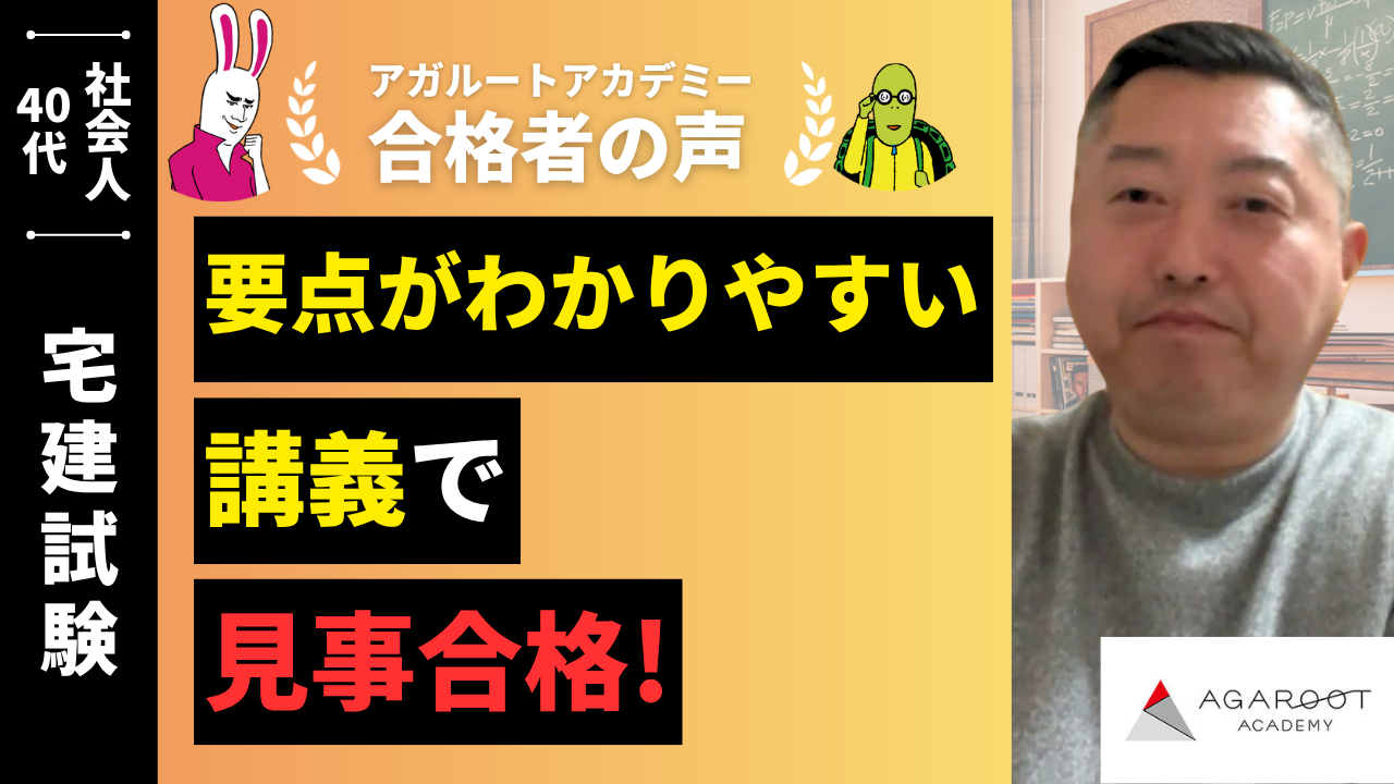 2024年に賃貸経営管理士の受験をひかえていた際に、YouTubeで工藤先生の動画を見かけてアガルートの存在を知りました。