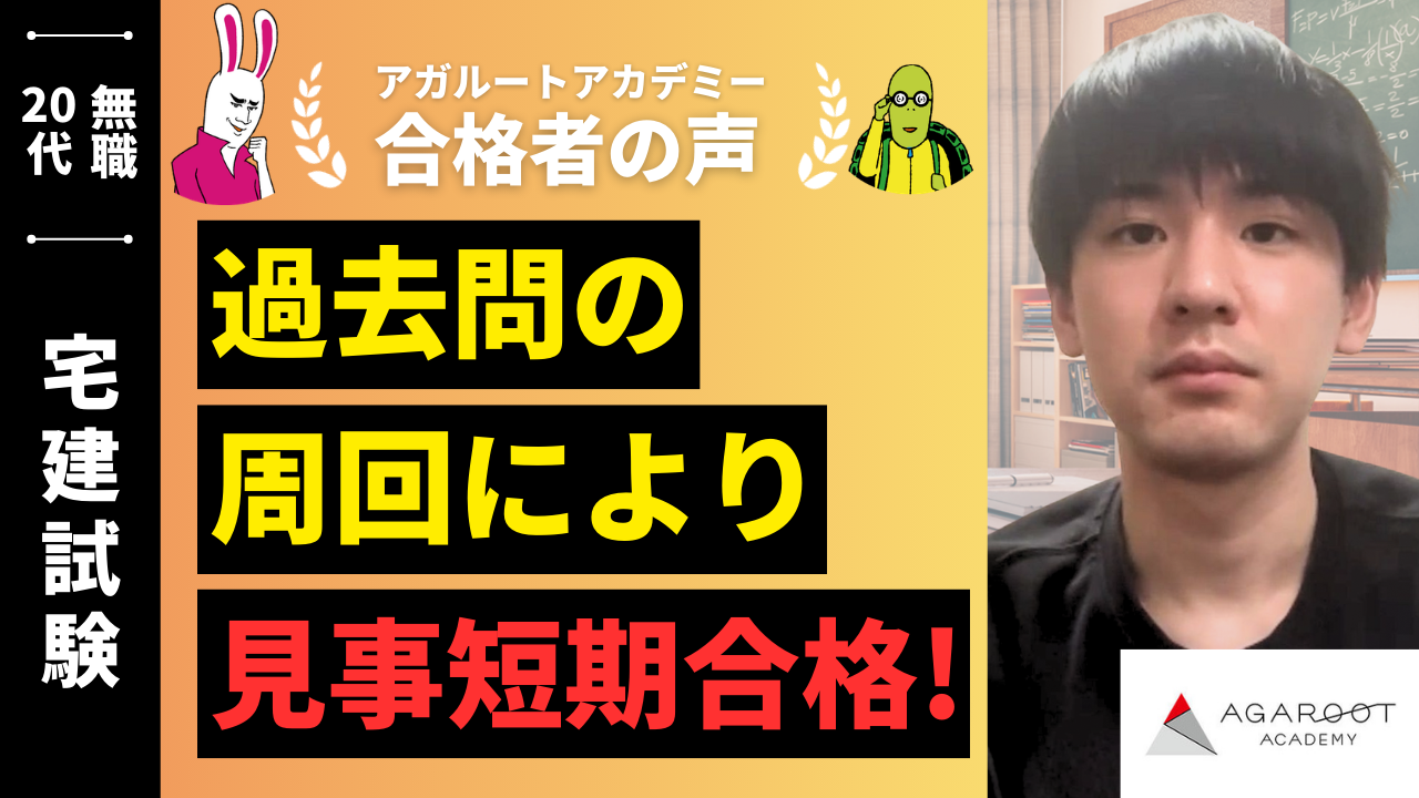 僕は今回3回目の受験でようやく宅建試験に合格することができました。宅建試験は毎年1回しか行われていないので、年に数回行われている試験や好きなタイミングで受けられる試験とは違い、その年の試験に落ちてしまって次の試験を受けようと思ったら1年近く待たなければいけません。もちろん試験自体の難易度もそうなのですが、こういった年に1回しか受けられないというプレッシャーとも向き合っていかなければいけないというのはやはり大変でしたし、一発勝負特有の難しさはありました。いかに周りに惑わされず自分のペースでできるかが重要なのかなというのをこの3年近くを通して感じました。そしてなにより一人だけでは確実にここに辿り着くことはできませんでしたし、もしかしたら辿り着こうと思うことすらしなかったかもしれません。なので家族をはじめ応援してくれた方々や誠心誠意教えてくださった講師の方々には感謝の気持ちでいっぱいです。本当にありがとうございました。