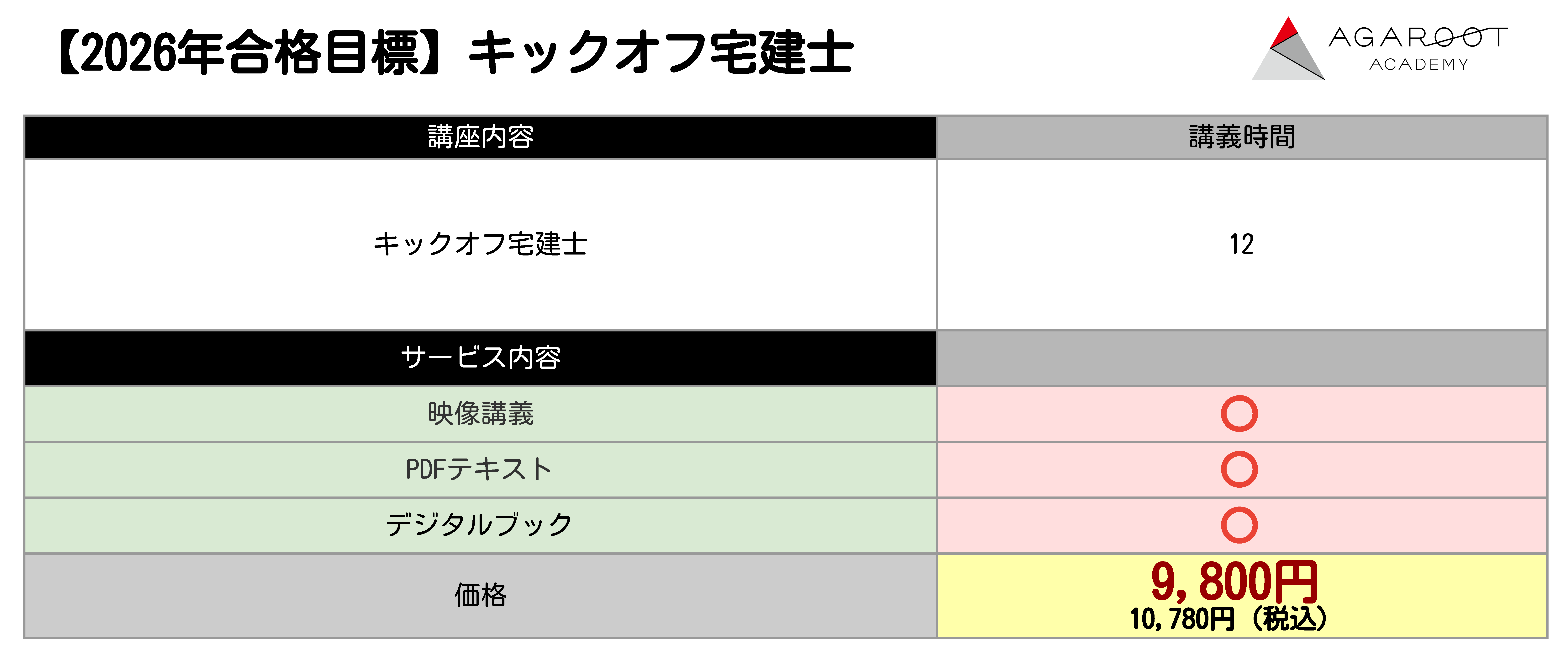 キックオフ宅建士販売期間:2026/10/13まで9,800円(税抜)10,780円(税込)