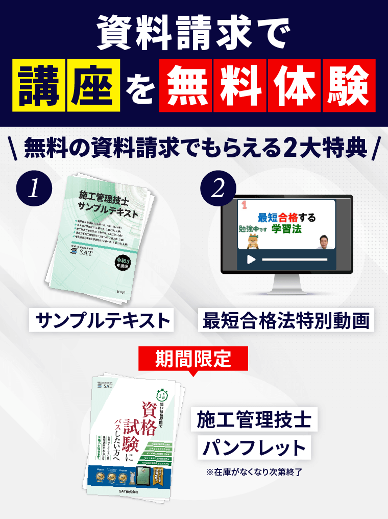 期間限定!施工管理技士講座パンフレットがもらえる!