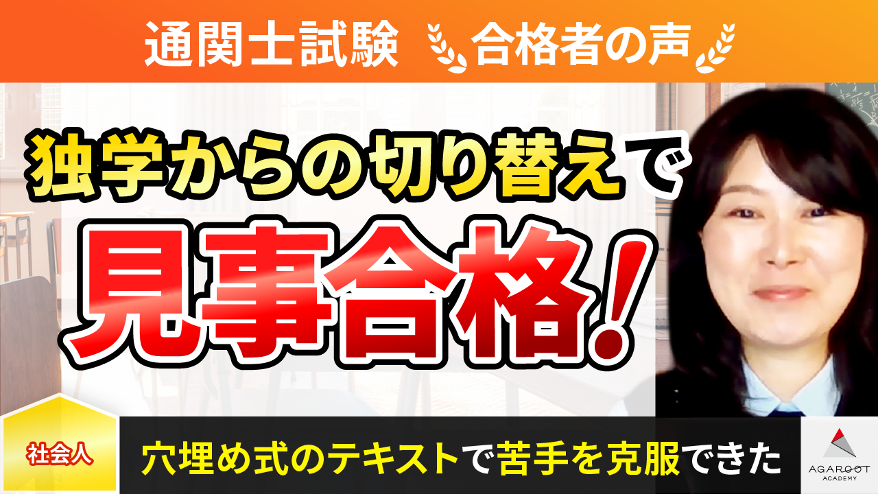 学習期間は十分ではなく、試験直前でも苦手項目はありましたが、Web講義で勉強の優先順位をつけてもらえたので、通関業法は最小限の学習に留め、他の苦手な項目や点数をとれる問題に時間を割くことができ、複数選択の得点の高い問題で点数を取ることができました。