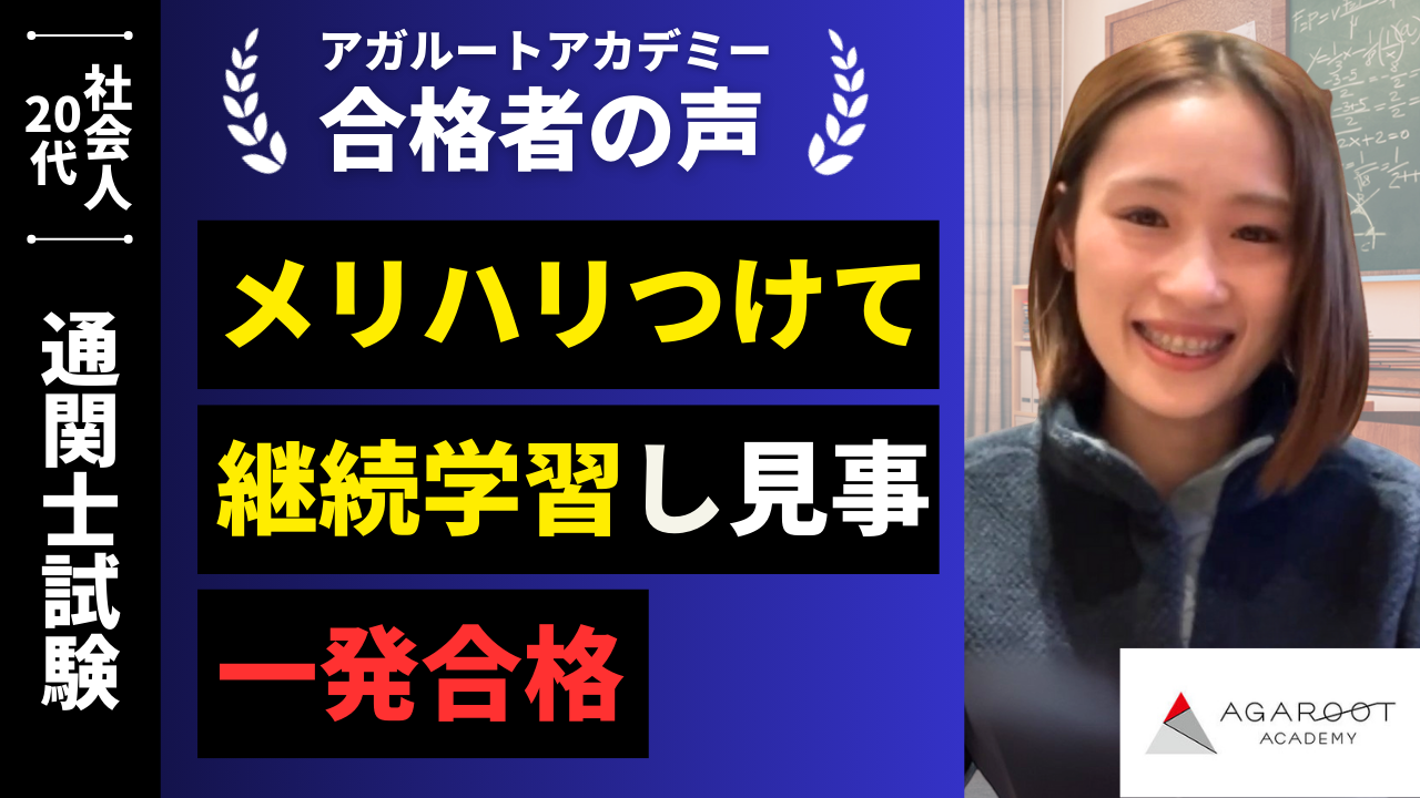 通関実務科目は作業スピードも必要であるため、回答時間を気にしながら繰り返し復習していました。通関業法については試験範囲が狭いため、直前期に詰め込む方針にしていました。通関業法は本試験で8割超の点数を獲得できたので、この方針は間違いではなかったかなと思っています。