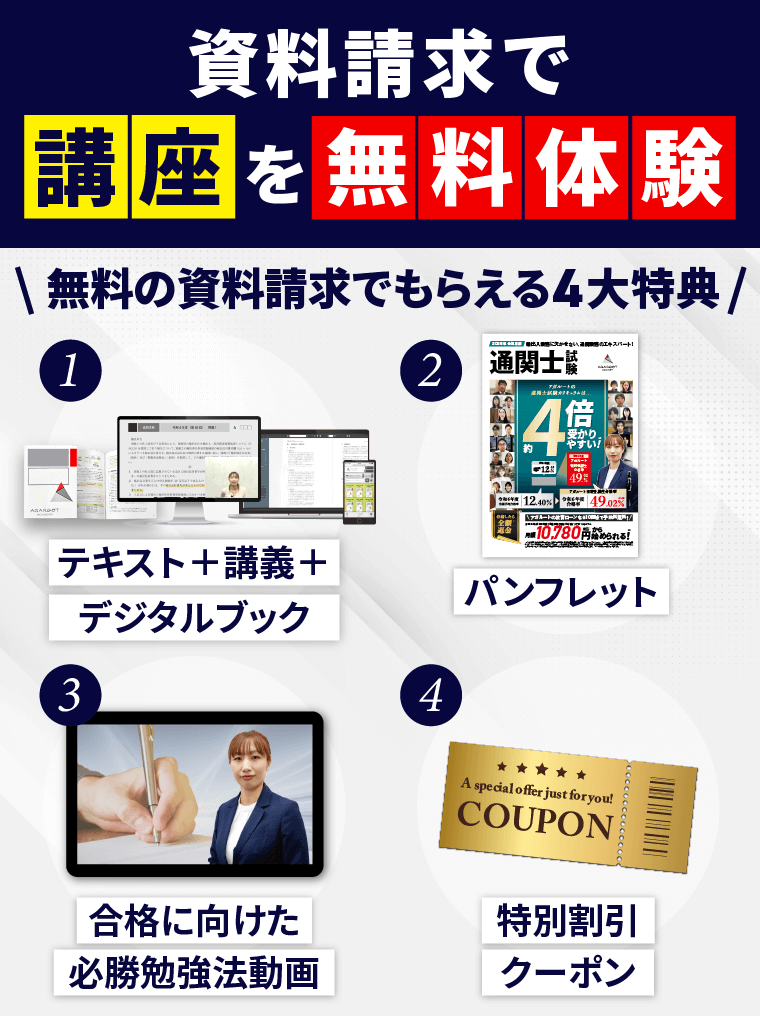 - 通関士試験の難易度は高いため、通信講座の利用もおすすめ