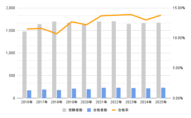| 年度 | 受験者数 | 合格者数 | 合格率 |