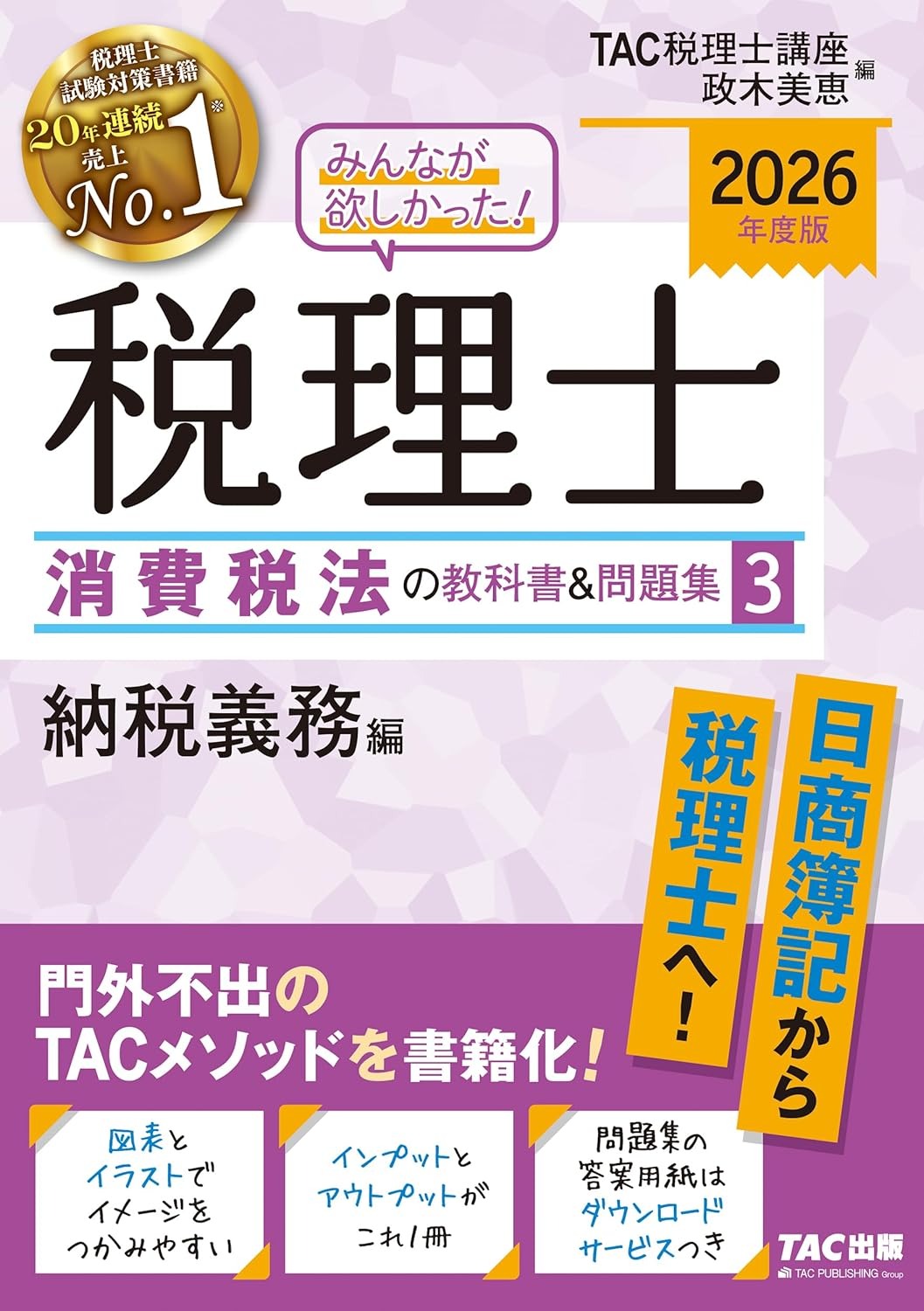 「みんなが欲しかった!税理士 消費税法の教科書&問題集(1)〜(3)」は、TAC税理士講座による“基礎からひとりで学べる”教科書一体型シリーズです。